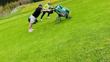 Ein sehr abwechslungsreicher Golfnachmittag, erst wurde es sehr steil, dann brauchten wir eine Leiter um das Green ...