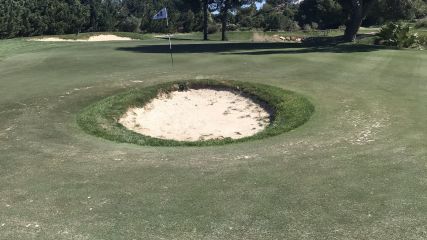 Da ist ein Bunker im Grün... Hier heißt es doppelt vorsichtig beim Schlag ins Grün! ...